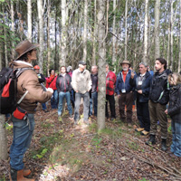 Différents modèles d’aménagement ont été présentés et visités sur le terrain : bandes riveraines d’arbres matures (15 ans), bandes riveraines d’arbres multi-espèces, agroforêts matures (15 ans), incluant des plantes de sous-bois (pour produits forestiers non ligneux ou pour fins de conservation), test d’espacement et bande filtrante pour la production de biomasse énergétique.